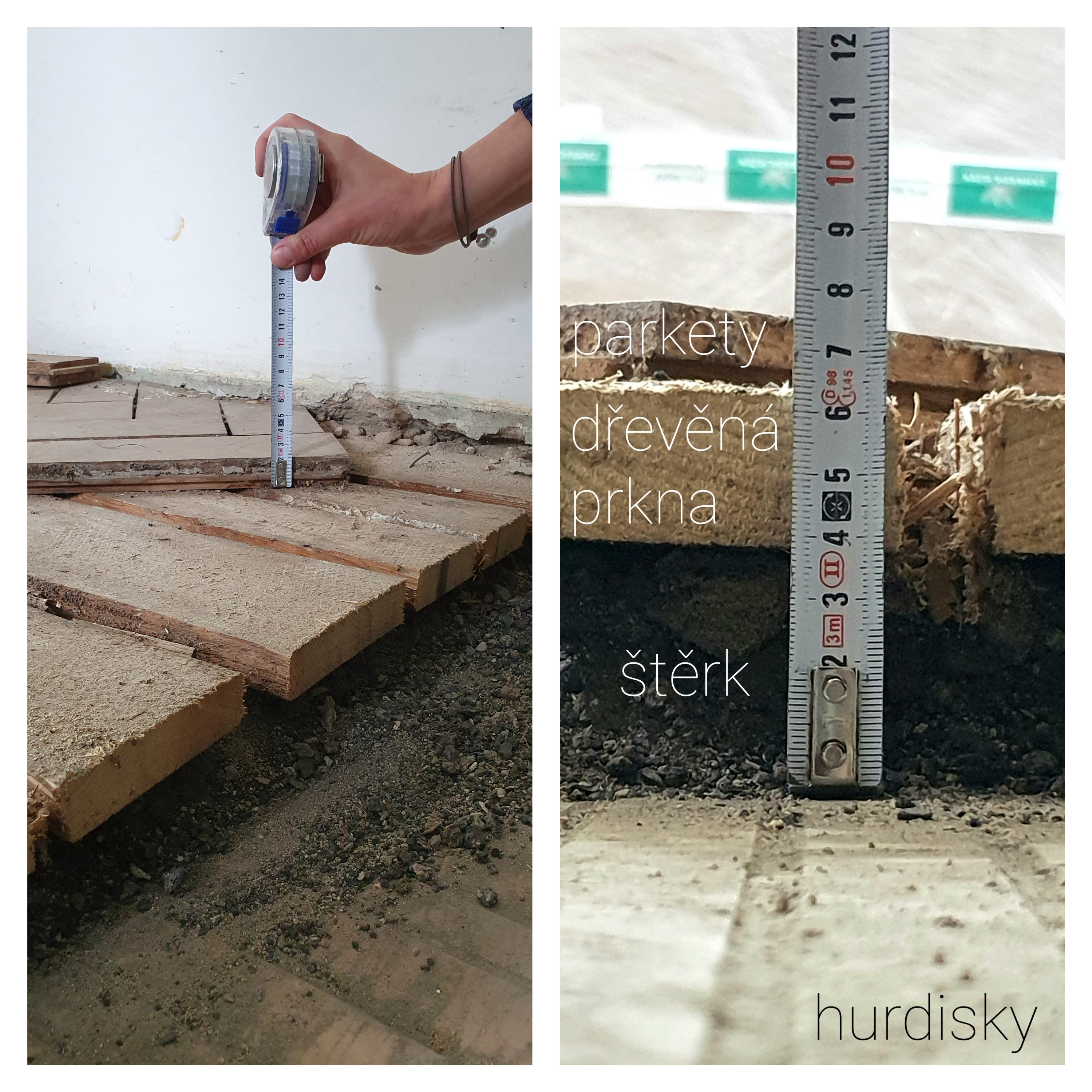 Podlaha přízemí není "na desce" na zemině, ale je tvořena hurdisky uloženými na prefabrikovaných železobetonových nosnících. Ostatní stropní konstrukce jsou dřevěné ze sbíjených fošnových I nosníků, uložených na rozšíření betonového věnce nosných zdí - v místě rozšíření vzniká železobenonová římsa, na kterou jsou dřevěné sbíjené nosníky osazeny.